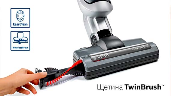 Електрощітка AllFloor HighPower зі швидкістю обертання до 5 000 на хвилину має спеціальну щетину TwinBrush для оптимального прибирання на твердій підлозі та на килимі. Червона щетина видаляє насамперед волосся, нитки та шерсть, а чорна - пил.