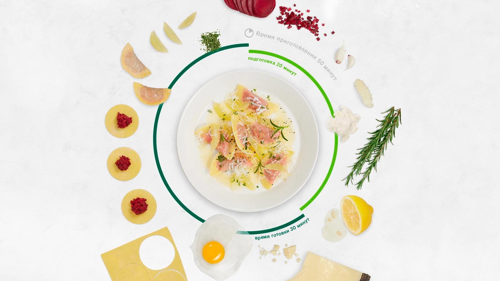 6. Подрібніть розмарин. Приправте буряк розмарином, додайте Рікотта, 50 г пекоріно, яєчний жовток, лимонний сік, посоліть і поперчіть. Яєчний білок залиште на потім.